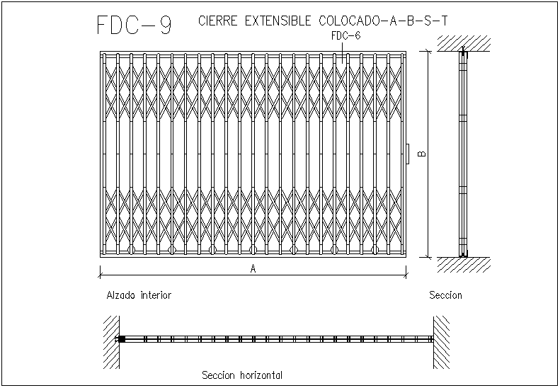 Interior elevation and joining view of bar and sectional view in Design of extensible closer placed view.
