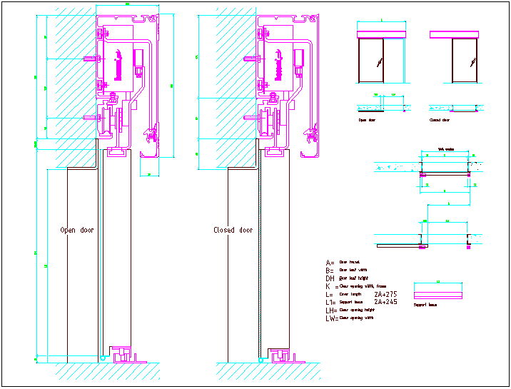 Opening & closing sectional view, sliding door with terminology detail dwg file
