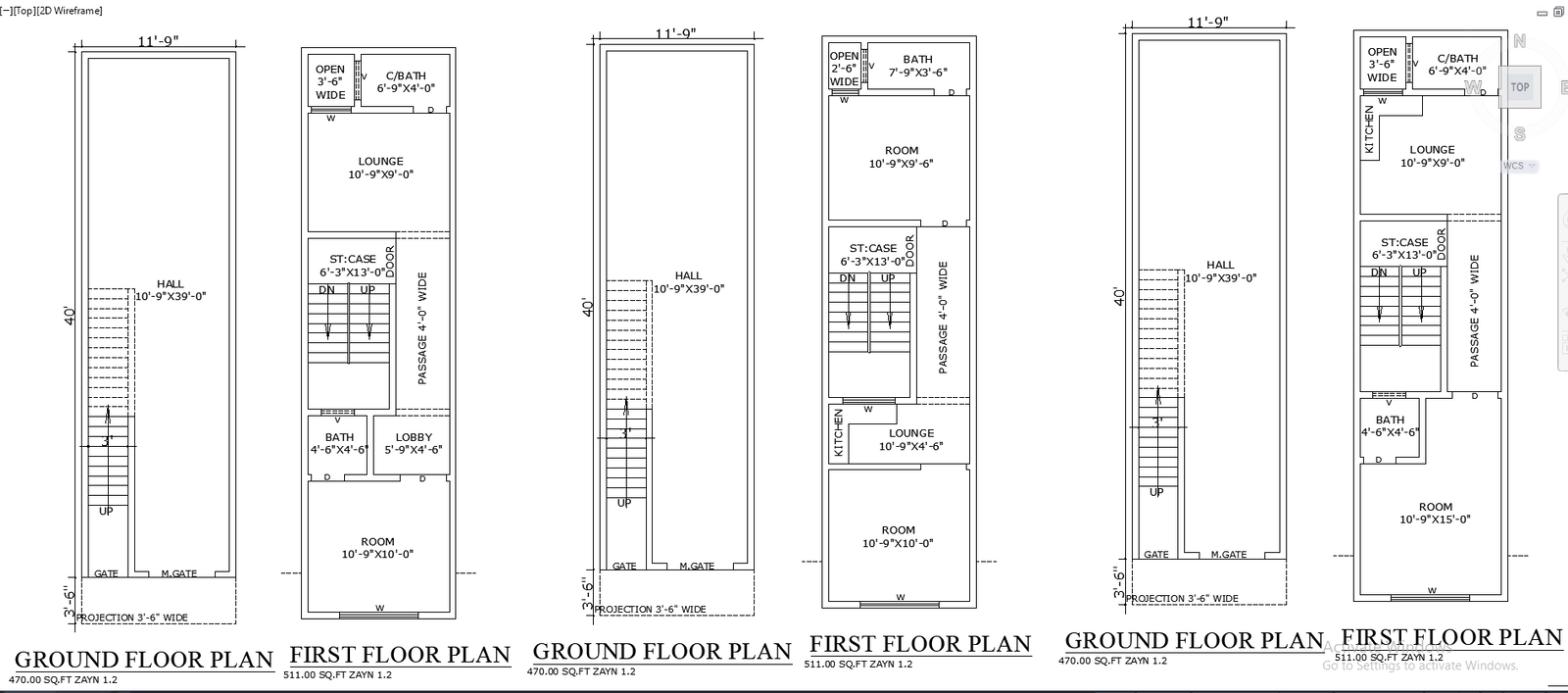11-9x43-6 Small House Plan with Lounge and Kitchen DWG File