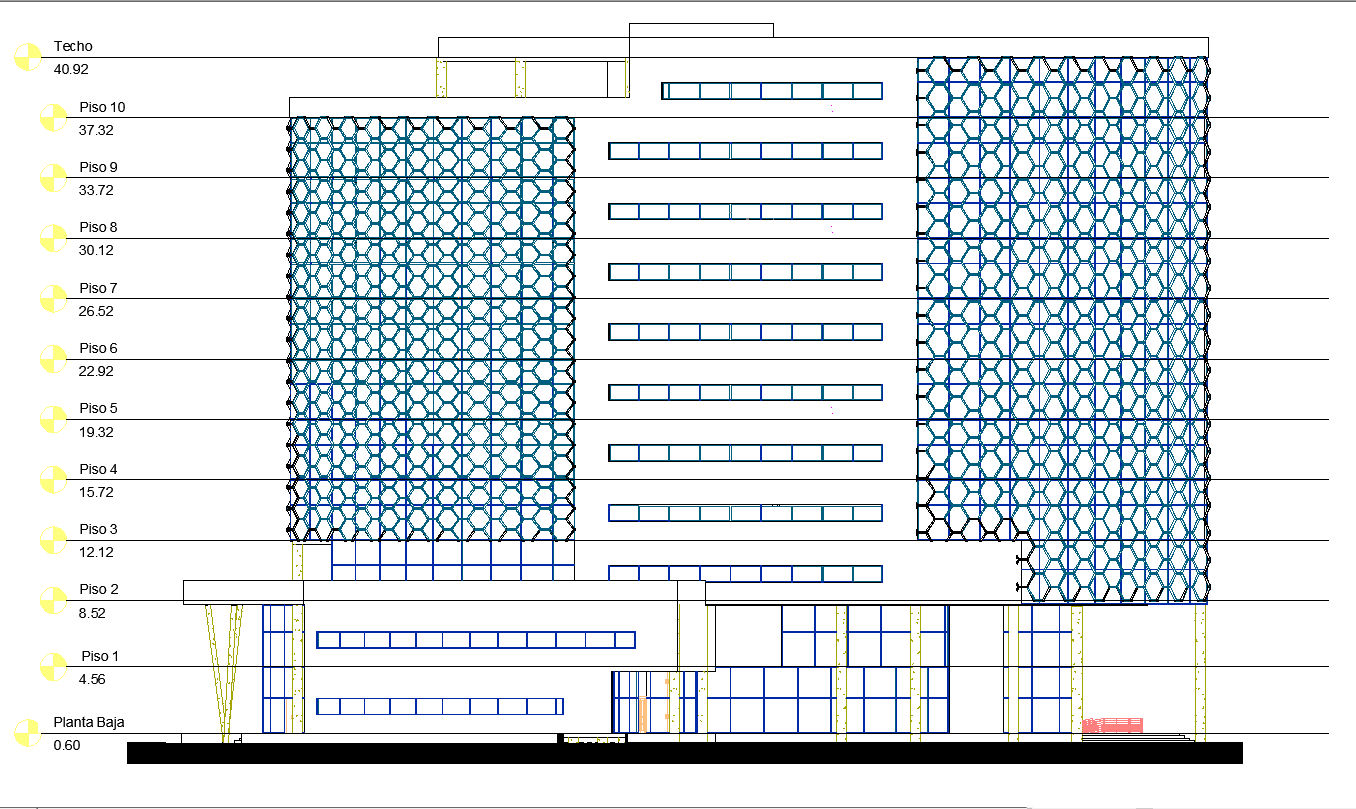 High Rise Building project dwg file. Find here corporate office building elevation design with much more detailing in dwg file.