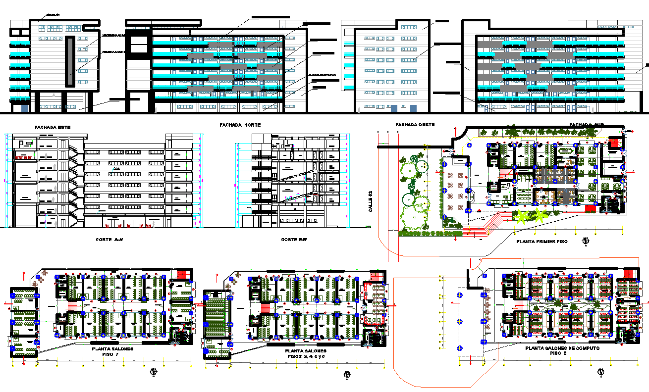 The architecture layout plan, construction plan, section plan, furniture detailing and elevation design of commercial Office Building project.