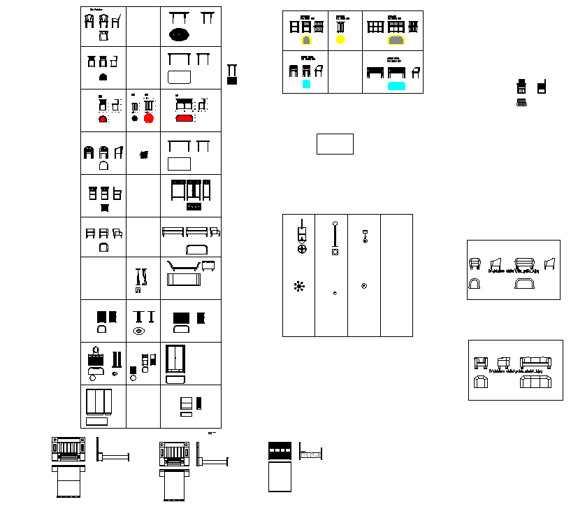 House Furniture AutoCAD Blocks with Tables and Sofa Layout DWG file