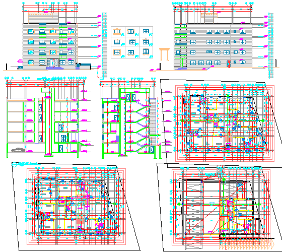 Apartment Building AutoCAD Plan with Sections and Elevation DWG file