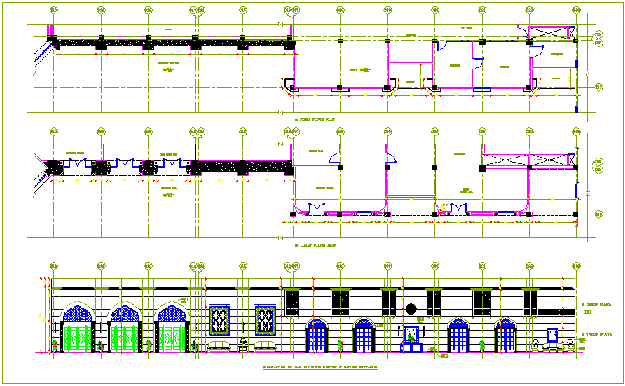 Bar design view in Islamic art with plan and elevation dwg file with plan and elevation with view of entry way,reception hall,casino,manager office and security cabin and