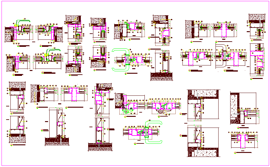Construction detail view of door and window dwg file