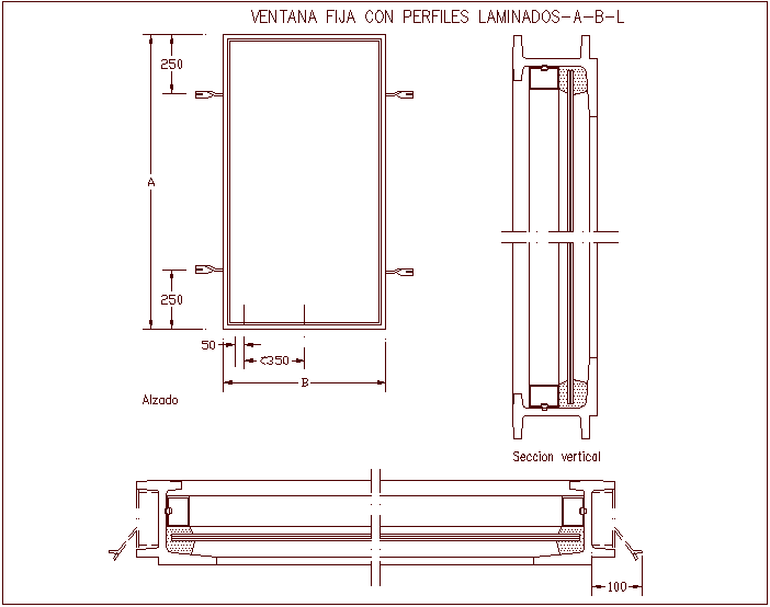 Fixed window with laminated profile view with sectional view dwg file