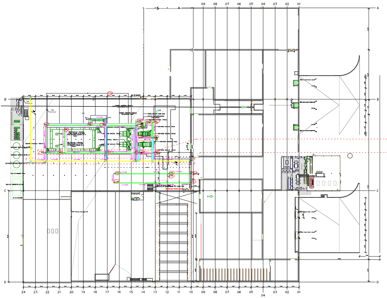 Mechanical Piping Layout with 2 to 6 Inch Lines and Pump Flow