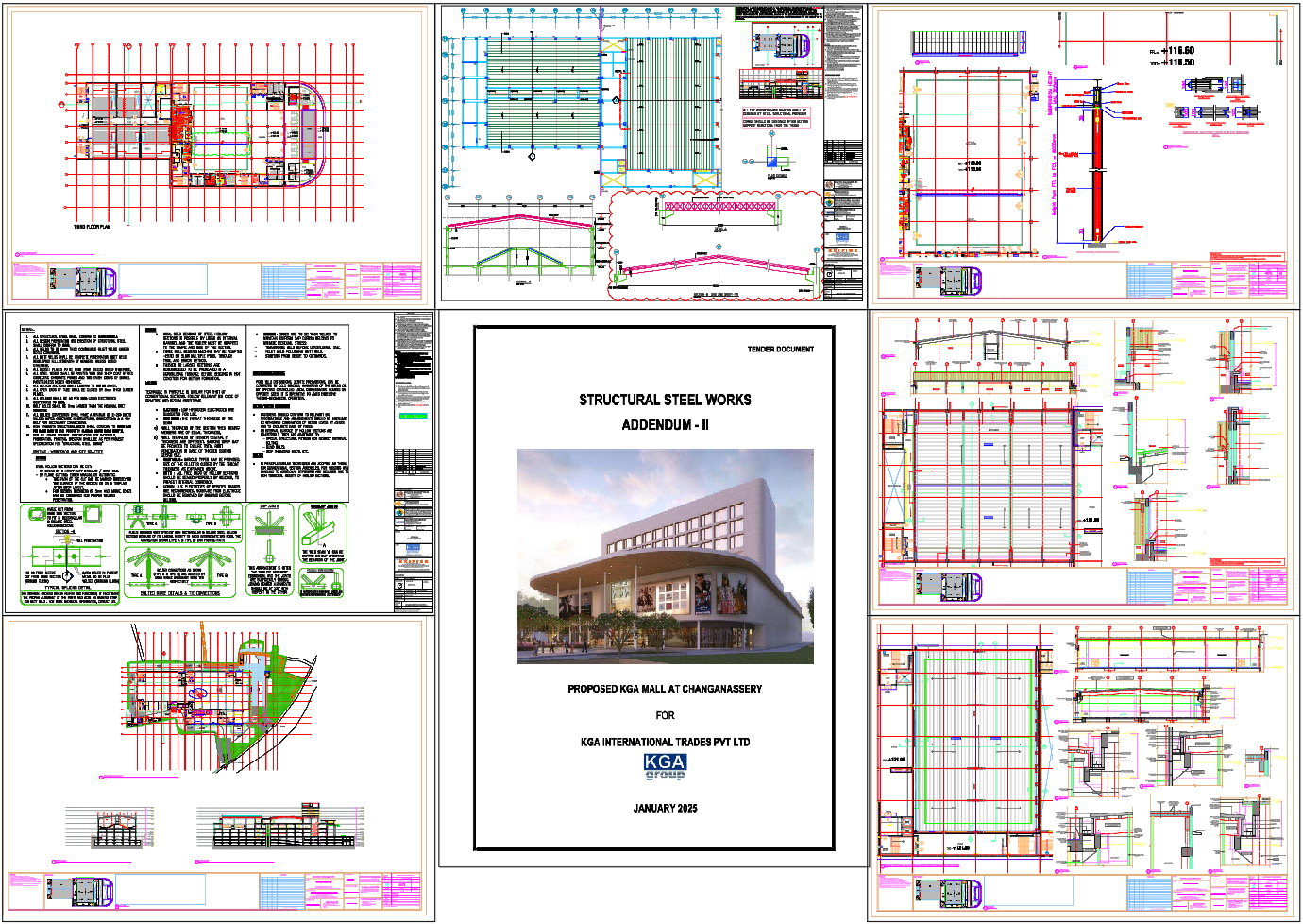 This AutoCAD DWG file features a detailed commercial mall architectural structural HVAC layout with roof plan, offering a complete set of coordinated drawings for large-scale project execution. The sheet includes multiplex theatre layouts with total seating capacities, banquet hall arrangements, hypermarket zoning, retail shop areas, public lobby circulation, and clearly dimensioned grid lines for precise construction alignment. Structural components such as steel roof truss diagrams, rafter spacing, expansion joints, cantilever slab details, RCC tie beams, column dimensions, and bracket beam layouts help engineers assess load transfer and material coordination. HVAC information includes ceiling exhaust CFM values, makeup air capacity, vapour hood positioning, service shaft routing, and notes on gas line restrictions. The file also presents multiple floor levels, including basement parking, lower ground, service floor, fourth-floor banquet roof, and multiplex terrace layouts. Sectional drawings illustrate theatre profiles, roof slopes, waterproofing layers, gutter detailing, and double-height lobby structures. With its accurate zoning, structural logic, and service integration, this DWG layout is designed for architects, civil engineers, interior specialists, and builders who require high-quality mall planning resources, encouraging users to upgrade to subscription access for professional-grade CAD files.