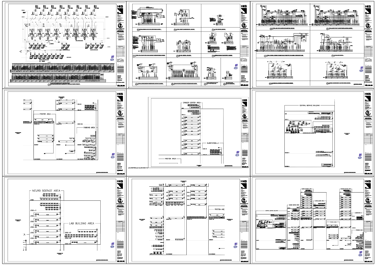 This AutoCAD DWG file presents a complete set of electrical single-line diagrams prepared for large institutional and commercial buildings. The drawings illustrate detailed power distribution architecture, including main incoming supply, transformers, LT panels, sub distribution boards, MCC panels, and feeder connections. Load flow paths are clearly shown with circuit numbering, breaker ratings, cable sizing, and protection devices. The layouts include segregation of critical and non-critical loads, earthing connections, and coordination between substations, utility rooms, and building service areas. Voltage levels, panel schedules, and feeder routes are represented to support accurate electrical planning and execution.