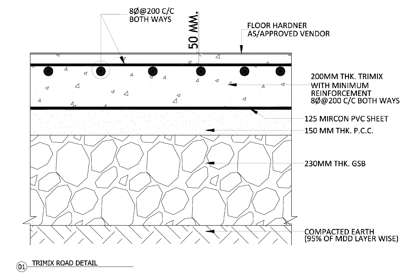Trimix Road Construction Detail Drawing With Reinforcement Layers