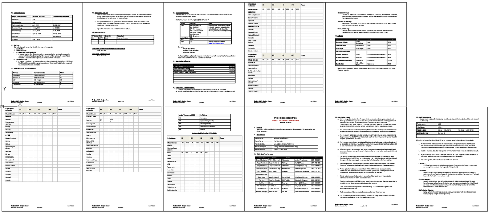 The layout also highlights execution strategies, material responsibilities, risk considerations, and coordination requirements through clearly marked sections. Tables indicate development status, consultant involvement, deliverables, and review checkpoints for each stage. The structured grid format ensures easy reference during meetings, audits, and site coordination. Dimensions, annotations, and notes are arranged for clarity and compliance with professional documentation standards. This drawing supports accurate planning, monitoring, and execution of projects by providing a single reference sheet for scope control, execution planning, and interdisciplinary coordination.