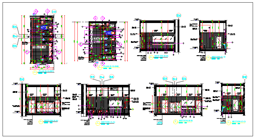 Architecture Plan of Toilet of Corporate Office that includes section plan, wheel chair, doors and window elevation, reflected ceiling, think wall block, toilet sheets, ceramic tiles, section plans, ablution details, doors, wall ceramic lestillo, lobby, wheel chair and much more of toilet design.