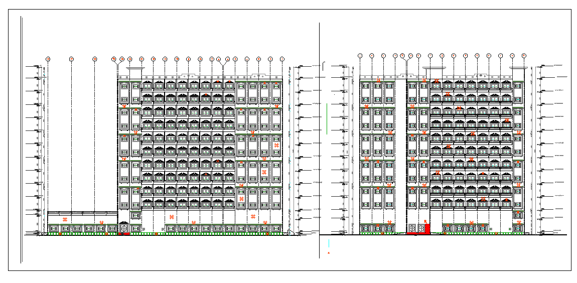 Elevation of hotel dwg file