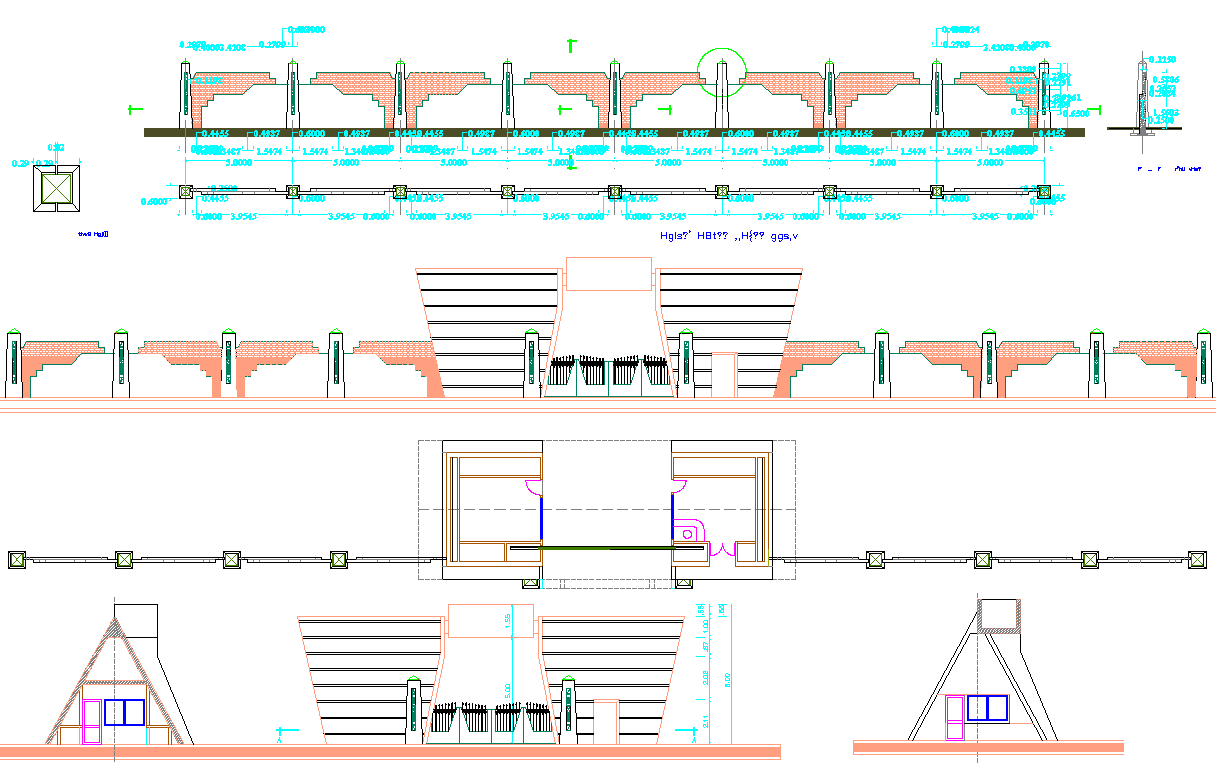 Gate Design and Section plan dwg file. Find here layout plan, section plan and elevation design of wide gate entry with compound wall design.