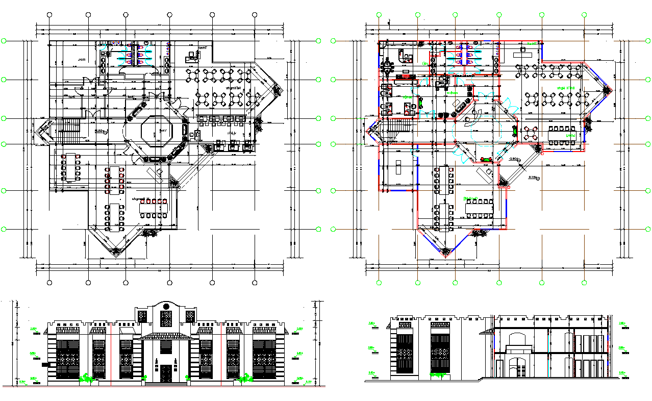 The architecture layout plan of the ground floor plan and first-floor plan, section plan and elevation design of Library project detail.