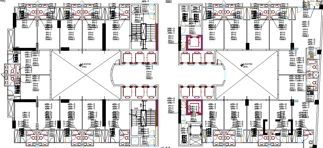 5 Star Hotel drawing dwg file Plan that includes reception area, gate, waiting lounge, sitting area, cafeteria, washrooms, guest rooms, lobby, elevator lobby, garbage, heater, service room and much more of hotel design.