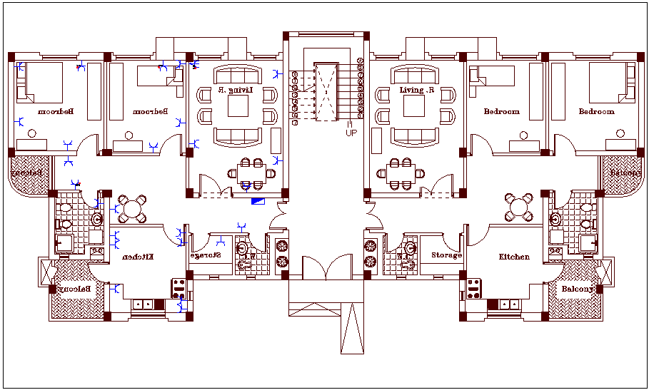 Family house design plan view dwg file with view of entry way,bedroom,kitchen,wash