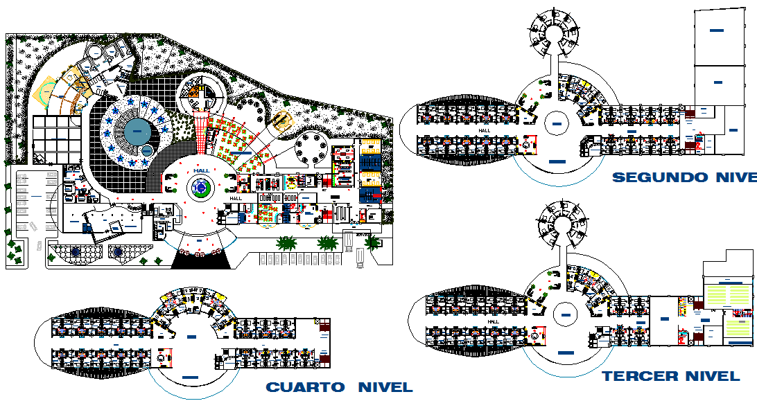 hotel plan design dwg file hotel plan having drawing of bedroom, kitchen hall, parking ,lobby, furniture details