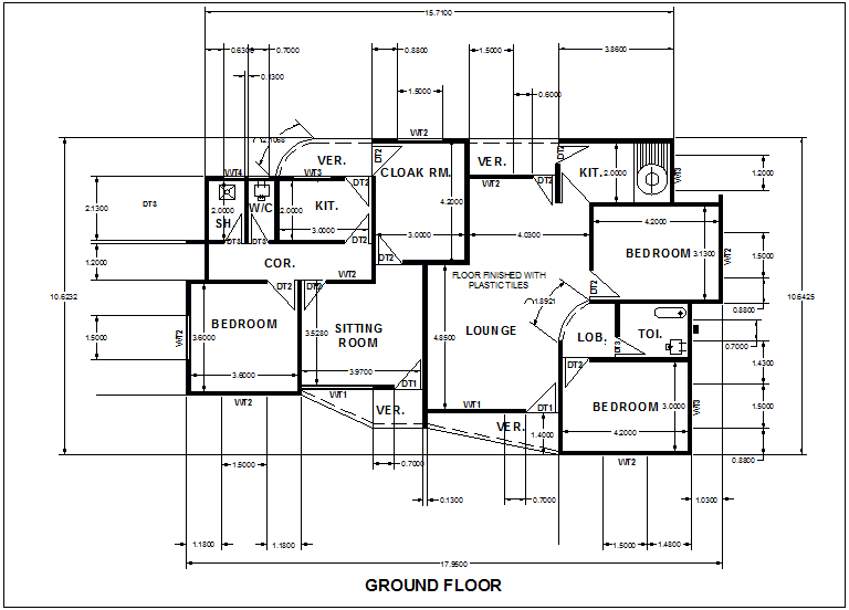 Ground floor design of house with dimension dwg file with view of plan of ground floor