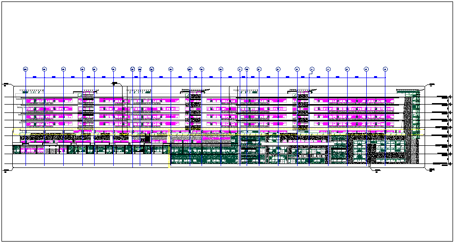 Elevation view of building design dwg file with view of floor view and necessary dimension view and entry way,balcony view,horizontal and vertical column view and