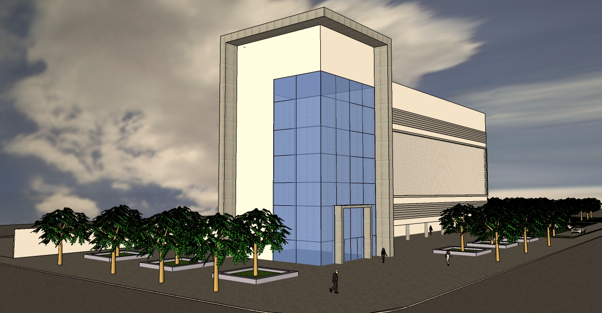 The 3D Hospital AutoCAD DWG drawing showcases a modern architectural structure featuring a fully rendered exterior view and detailed building layout. The drawing highlights the hospital’s elevation, façade design, and entrance lobby area with realistic proportions and material representation. The rendered 3D visualization includes glazing details, structural columns, and surrounding landscaping elements like tree plantations and pedestrian zones. It demonstrates an efficient hospital façade design that blends functionality with modern architectural style.