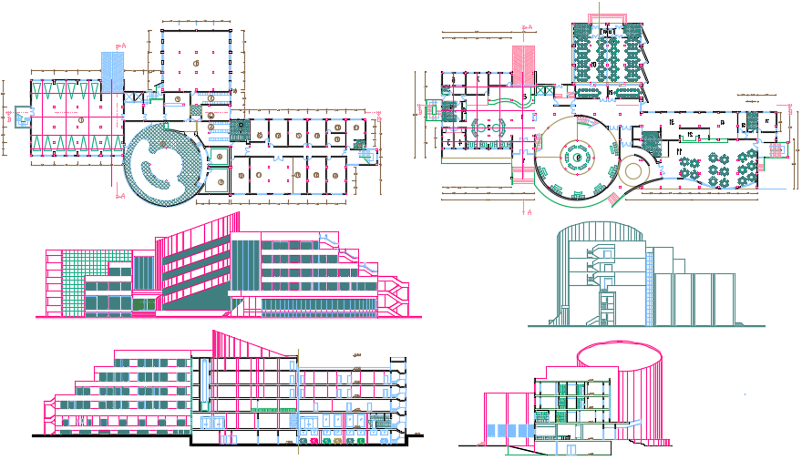 Hotel layout plan dwg file. the architecture layout plan, section plan and elevation design of House project..