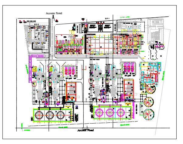 Construction detail of a power house with fuel system pump water & drainage system dwg file