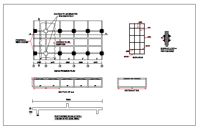 structure detail of a beam with sections columns and measurement of steel beam framing structure detail of a beam.