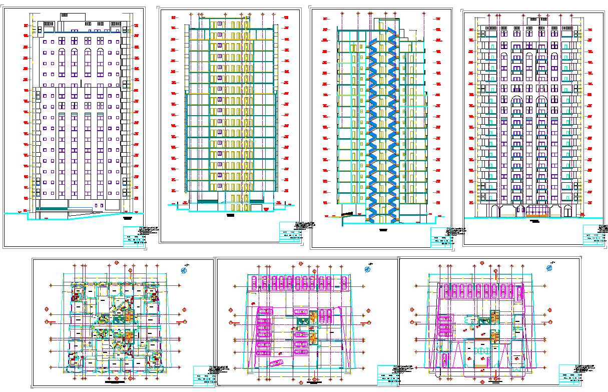 Find here layout plan, structure plan, construction plan, section plan and elevation design of Apartment building Project detail view deg filer
