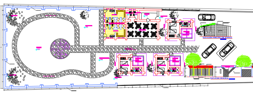 Tourist Project layout Dwg file. the architecture layout plan, section plan and elevation design of Tourist Project..