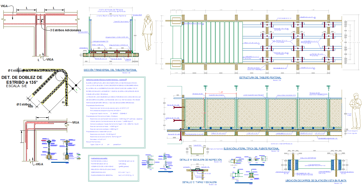 Pedestrian Bridge AutoCAD DWG File Showing Plan Section and Elevation