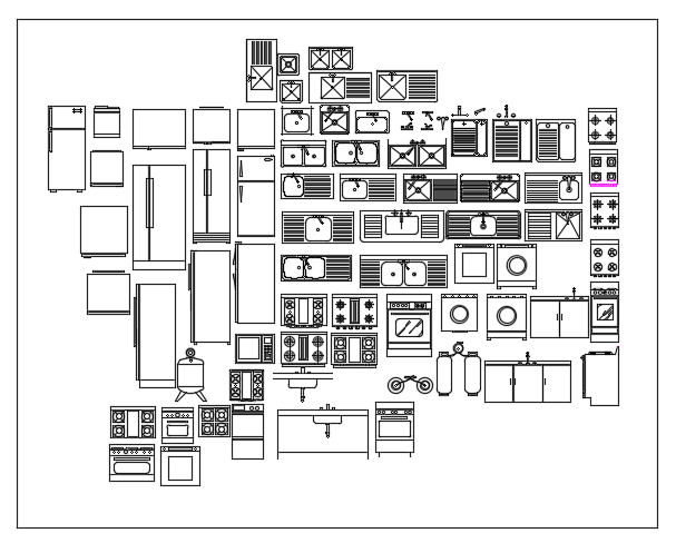 Block of kitchen accessories showing different types and style of sinks gas stove storage cabinets refrigerator ovens all these of all types and also taps of different style.