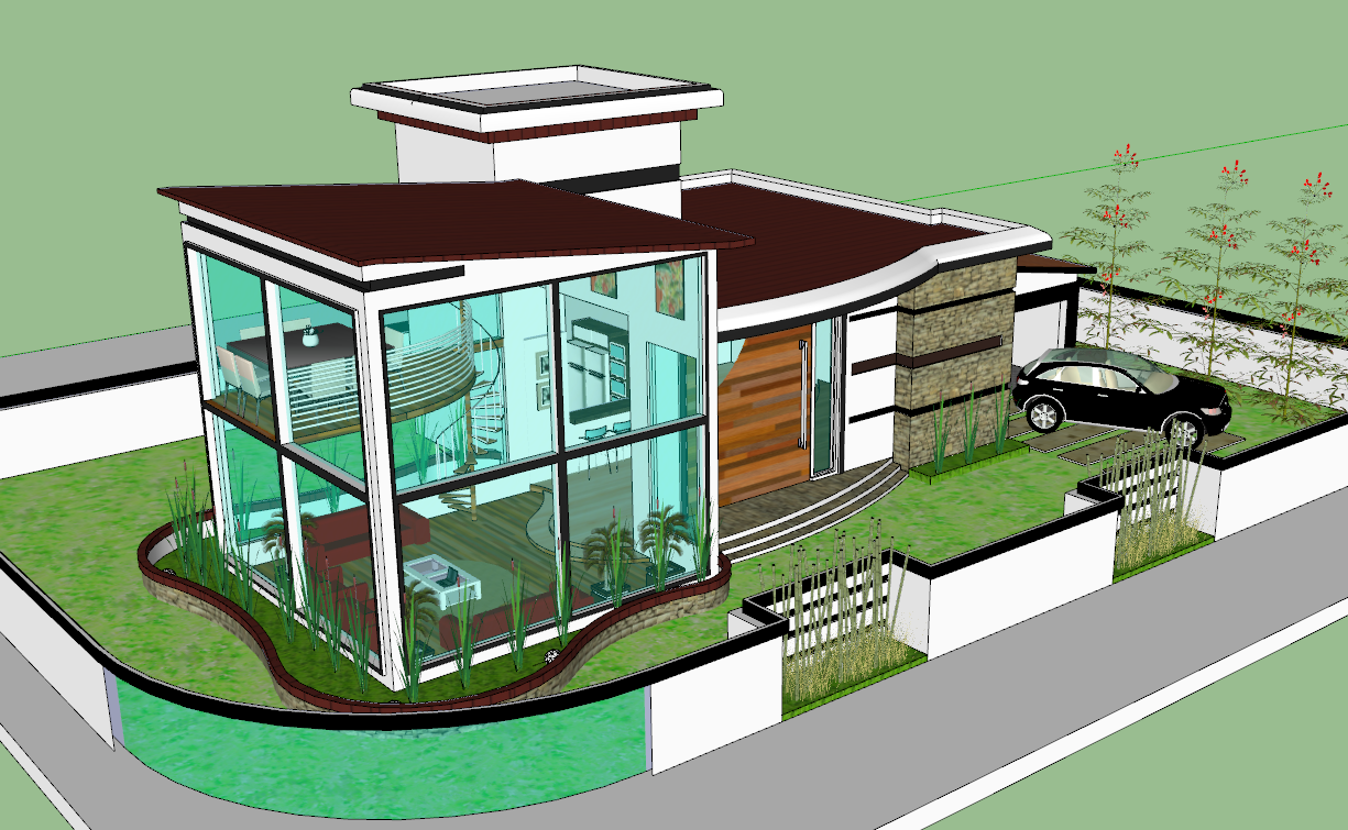 3d Modern House Project sketch up file. Find here 3d model of sketch up file with all interior design detailing and landscaping design.