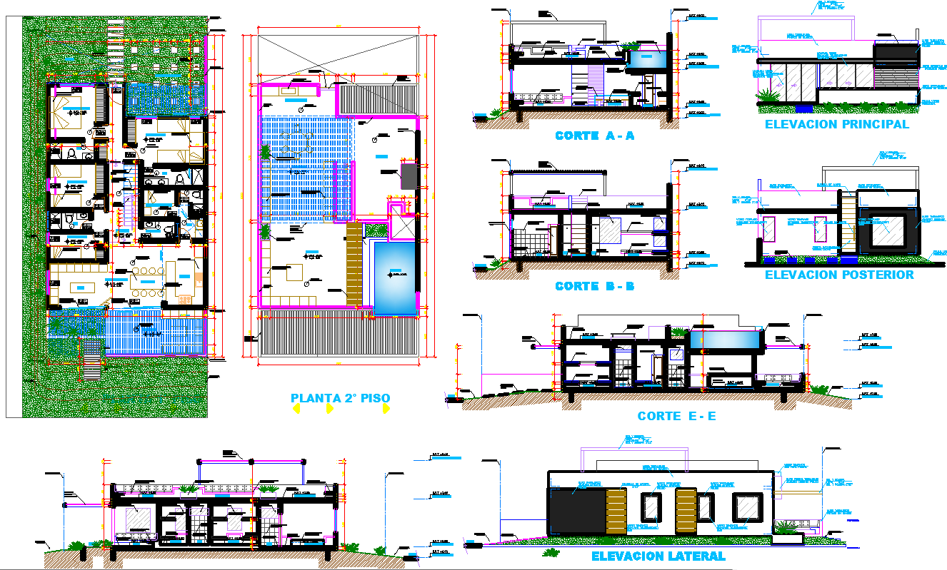 Find here architecture layout plan, structure plan, construction plan, section plan and elevation design of Family House project.