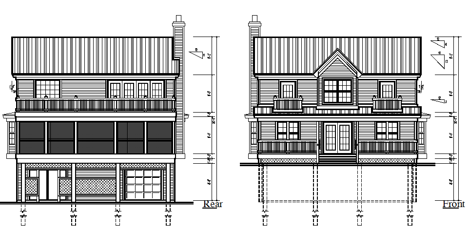 Rear & Front side house elevation detail in this file, modern type design the elevation. 3 floor level elevation show the out side.