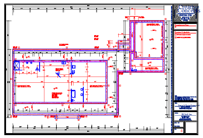 Foundation Lay-out design in autocad file, 1/2"x10" anchor bolts w/ 2" washers, within 12" from each end & 24" o/c, type, pool w/ aluminum enclosure,see other drawings etc detail.