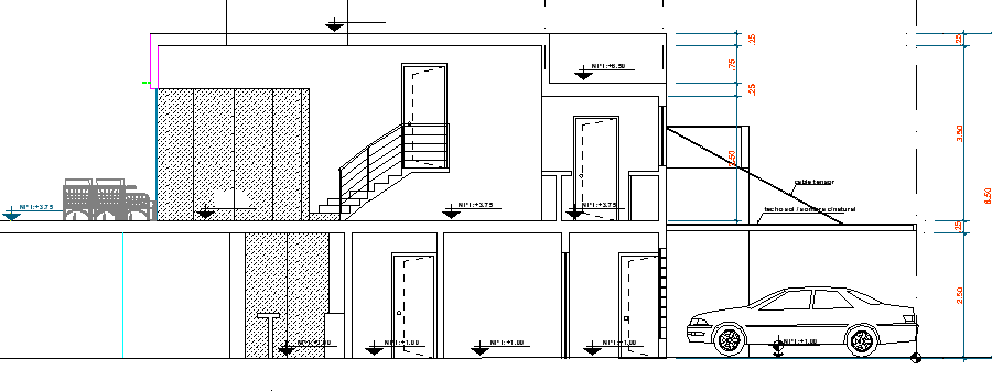 Multi Flooring Beach House Elevation that includes detailed view of front and back elevation, side elevation, garden, entry gate, door and window elevation, stair case view, parking area and much more of beach design.