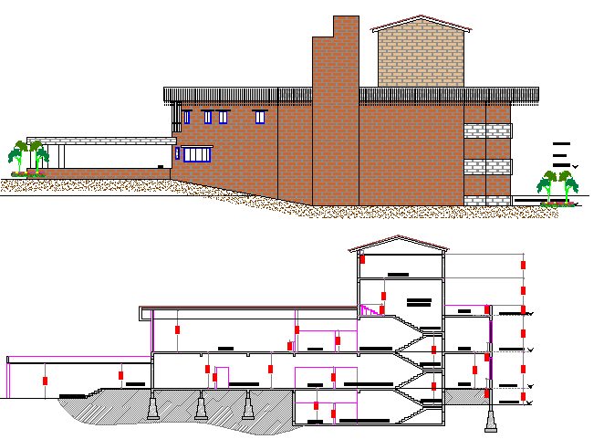 Beach Resort Elevation Plan and Section Plan dwg file.