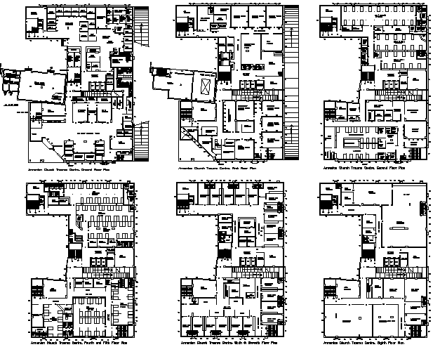 This AutoCAD Health Care Center DWG file includes a complete set of architectural floor plans, providing a comprehensive overview of the hospital layout and interior organization. The design features multiple levels, each with detailed room arrangements, consultation areas, patient wards, and support service sections. The file also includes furniture layouts, corridor connections, and specialized zones such as emergency units, laboratories, and administrative offices. The drawing ensures proper functional zoning and circulation flow, critical for healthcare facility design.