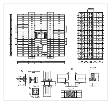 Elevation of a Residential building CONSTRUCTION DETAIL OF columns beams joints with accurate placement details in the building with measurements.