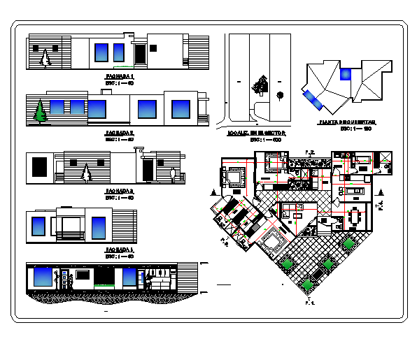 Floor plan and exterior elevation of a bungalow showing foor plan showing living room dining kitchen bed room terrace and exterior elevation showing entrance gate balcony garden windows sloping roof parapet parking with dimensions.
