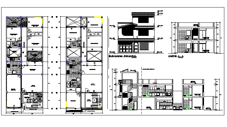 Floor plan and exterior elevation of a bungalow dwg file