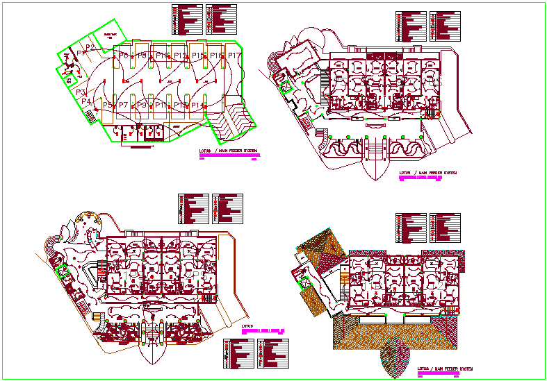 Building view with electric feeder plan systems with underground view dwg file with view of electric plan view with electric line and legend and view of building with kitchen