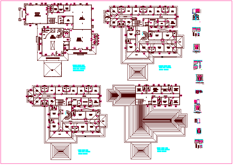Plan of restaurant building with design view of door and its detail dwg file with view of