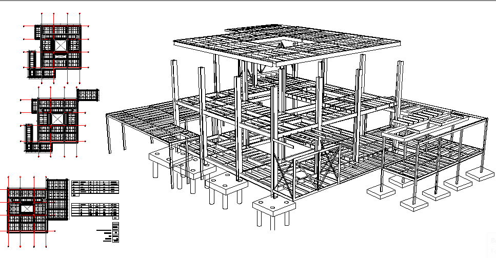 isometric view of steel structure detail with plan. details of column and beam given. Rivet jointing done for joining. Top view of structure with details provided. Also technique of joining is shown