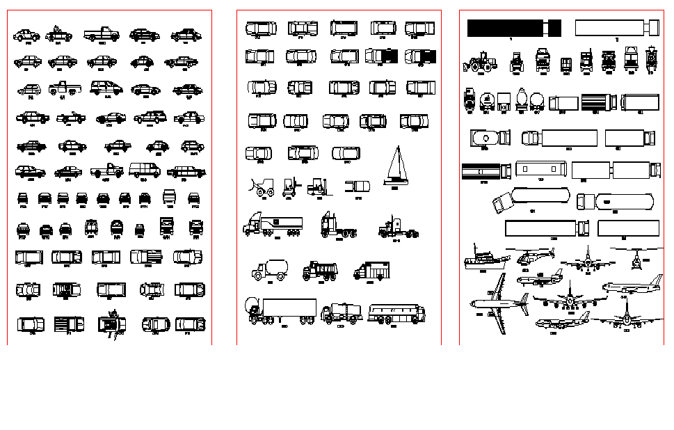 Vehicle CAD Blocks Collection with Cars, Trucks, and Aircraft