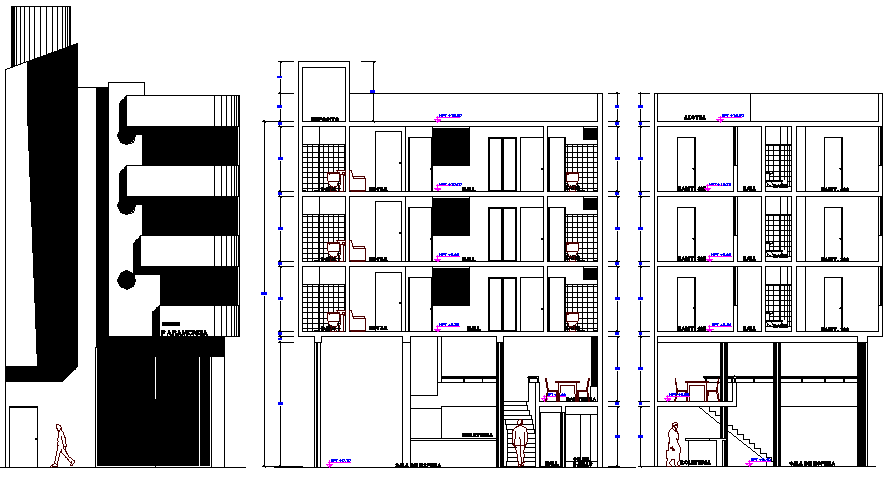 Trace Complex Architecture Design and Elevation that include shops, restaurants, front elevation, doors and windows, stair cases, toilets and bathrooms and much more of trade center design.