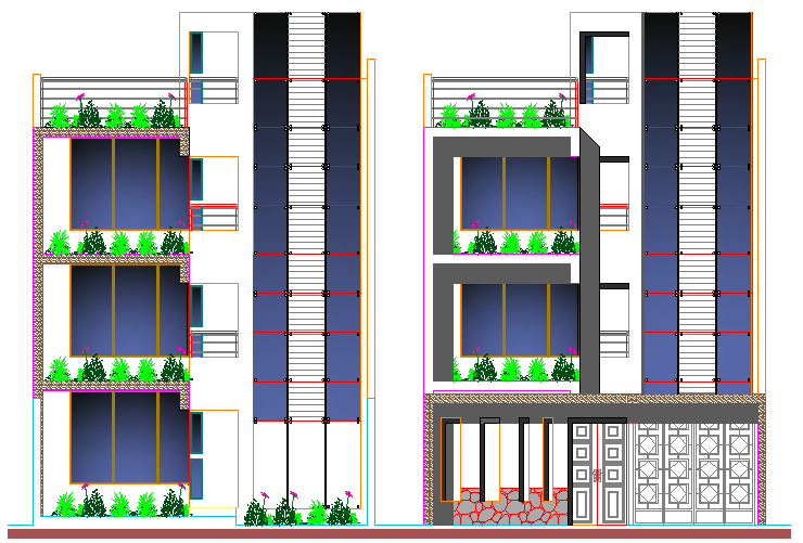 Multi Family Housing Flats Design and Elevation dwg file