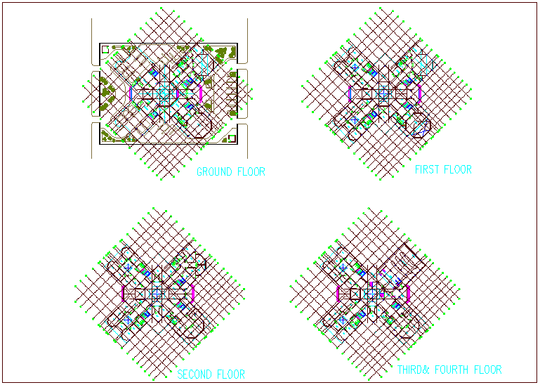 plan of ground floor to third floor with view of entrance way,tree view and washing area,auditorium,reception hall,chairman office,secretary room,office and kitchen view