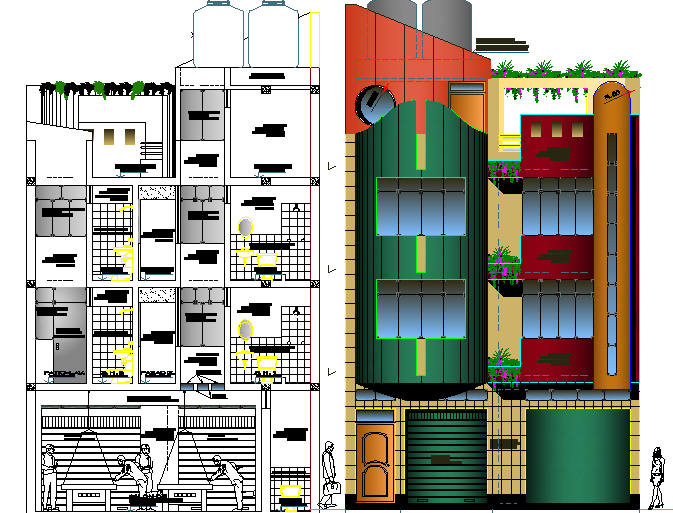 Multi Family Housing Flats Design and Detailed Elevation dwg file